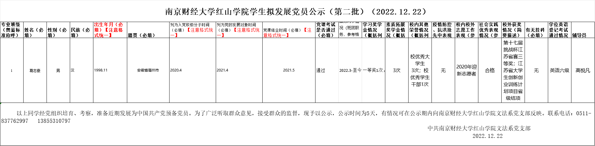 万象城娱乐awc线路文法系党支部学生拟发展党员公示(2022.12)(第二批)