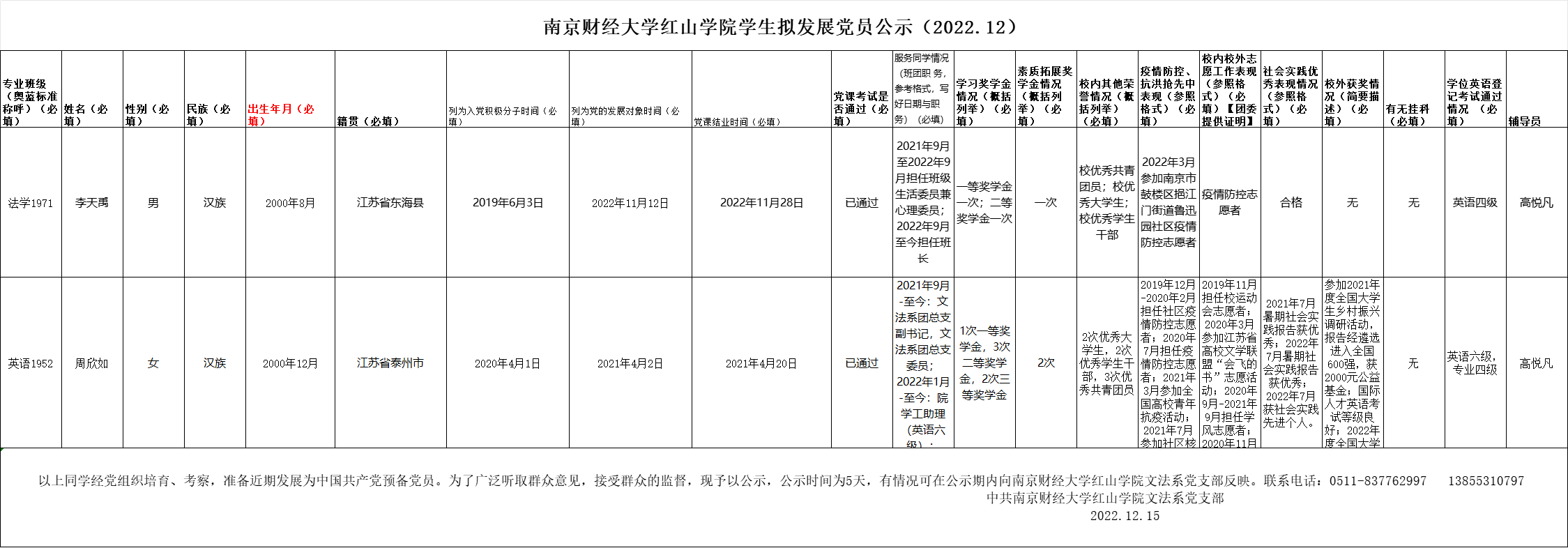万象城娱乐awc线路文法系党支部学生拟发展党员公示(2022.12)(第一批)