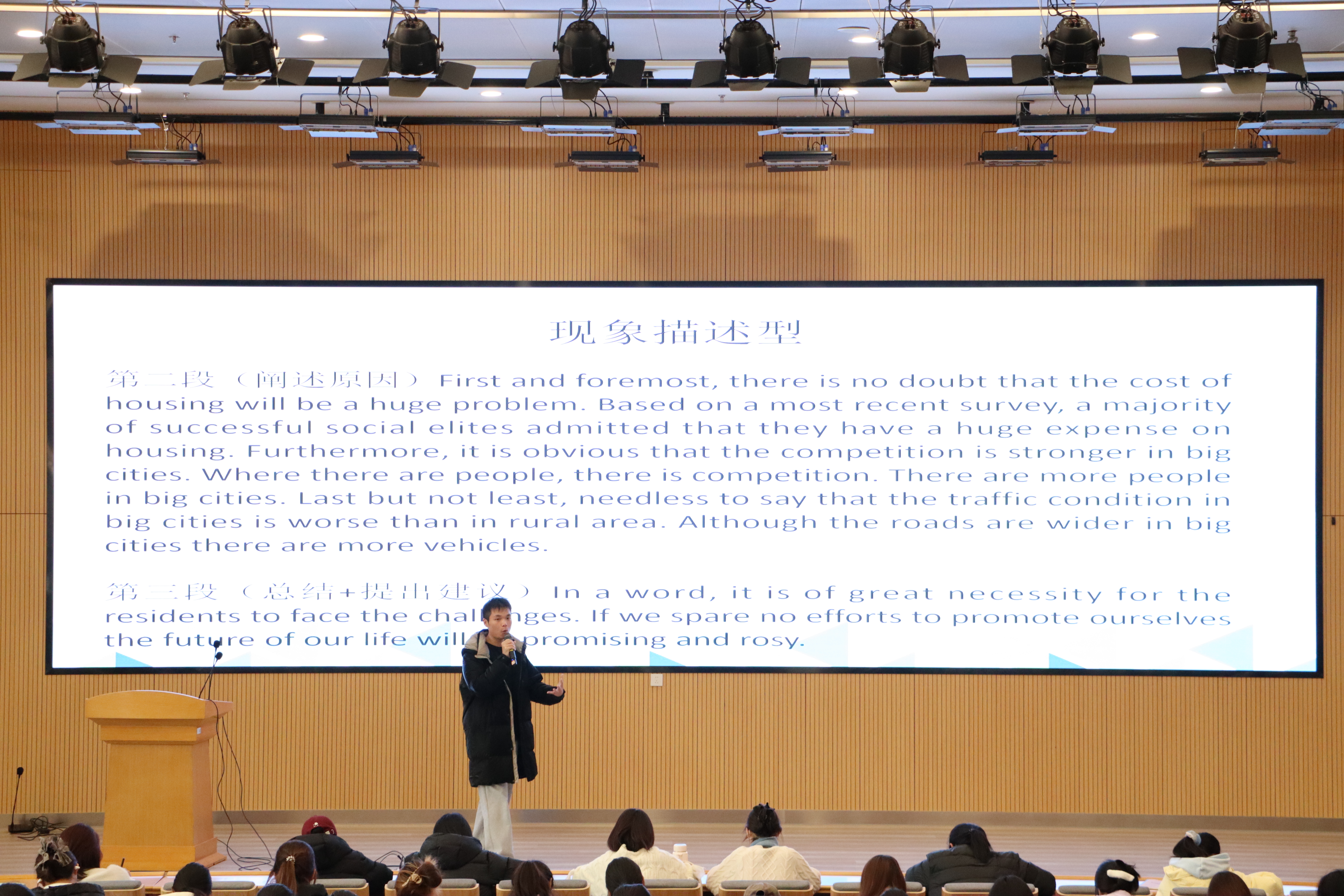 为助力我校学子高效备战全国大学英语四、六级考试,11月26日,外国语学院成功举办“多维赋能,‘英你精彩’”主题系列活动(四)—“四六级考前加油站”专题讲座。本次讲座特邀学院王子豪老师与李慧秋老师联袂主讲,为同学们带来了一场内容丰富、针对性强的考前辅导。