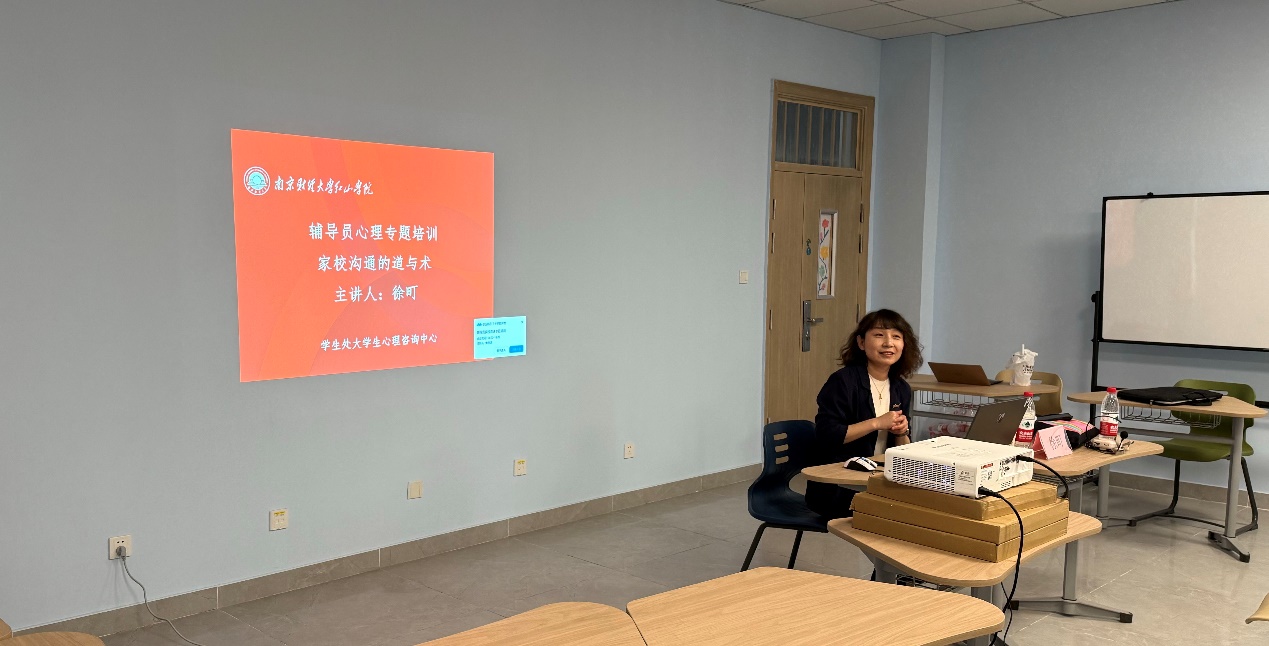 4月24日,学生处大学生心理咨询中心在高淳校区智圆楼532团辅室开展了题为“家校沟通的道与术”的辅导员专题培训。本次培训由三江学院心理中心主任、国家二级心理咨询师、中国心理学会注册心理师(X-18-053)徐町副教授主讲,全体辅导员参与了此次培训。