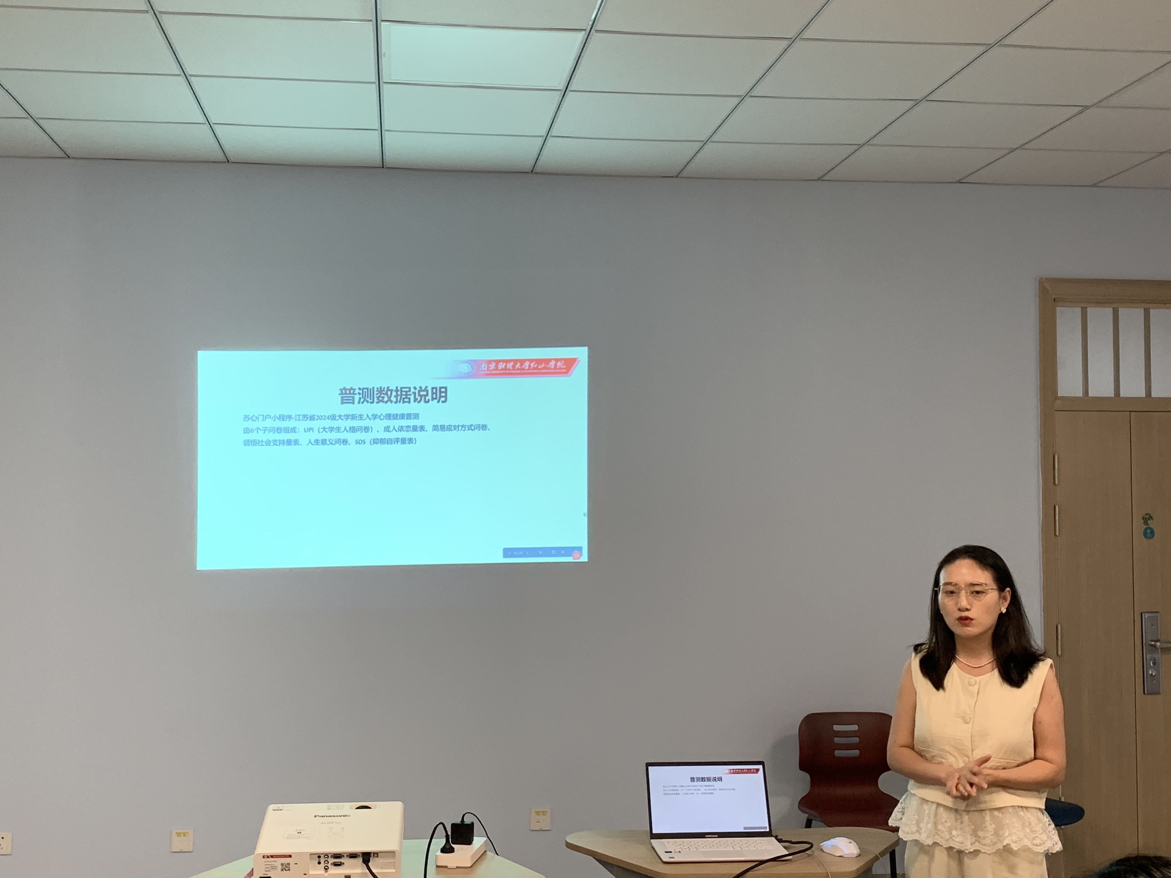会议开始,全体人员集中观看了“江苏省2025年高校新生心理普测培训会”直播。省教育厅专家围绕普测系统、量表选用、施测流程、访谈技巧及数据安全等五方面进行解读,重点强调了“一人一档、一生一策”的跟踪要求,并现场说明了新版“苏心门户”高校端与省平台的数据对接操作,为学院后续施测提供了标准化范式。