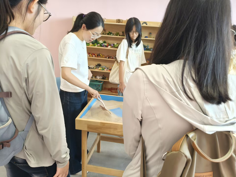 在活动中,心理中心的工作人员有序组织新生们参观了个体咨询室、团体辅导室、心理沙盘室、心理放松室以及心理宣泄室等各个功能区。在工作人员的细致引导下,新生们深入了解了各功能室的具体作用和使用方法。在心理放松室,同学们亲身体验了音乐放松椅和冥想引导,切实感受到身心的舒缓;在心理宣泄室,部分同学通过击打假人等方式有效释放了压力,直观地体会到情绪管理的重要性;在沙盘室,同学们借助沙具和沙盘,自由地表达内心的想法与情感,增进了对自我心理状态的认知。参观过程中,工作人员还介绍了心理咨询的预约流程和保密原则,引导学生正确看待心理求助。通过这次参观与体验活动,同学们对万象城的心理健康服务有了全面且深入的认识,为今后更好地维护自身心理健康奠定了坚实基础。