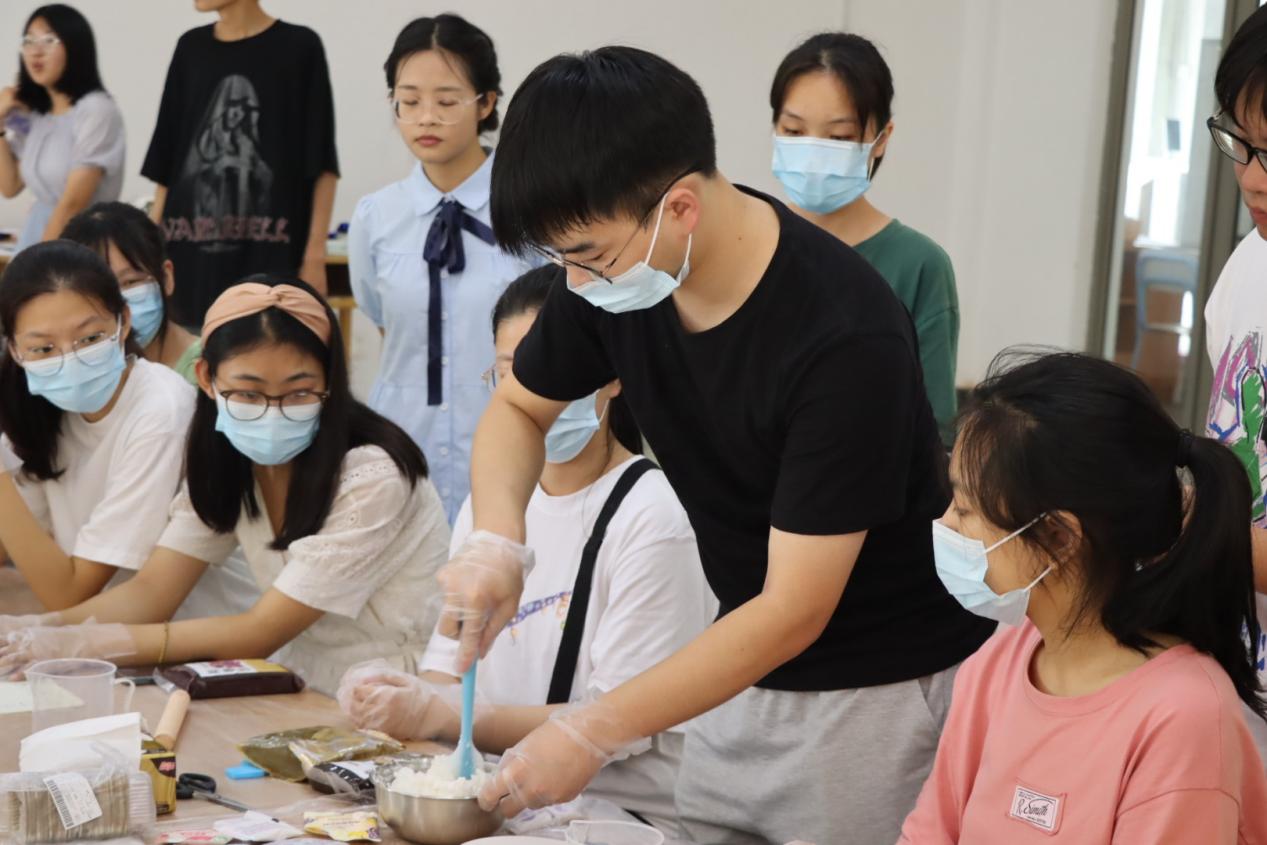 人事处邱海龙老师现场示范冰皮月饼制作过程部分参与活动的老师、同学们一同合影留念中秋节是中华儿女盼团圆...