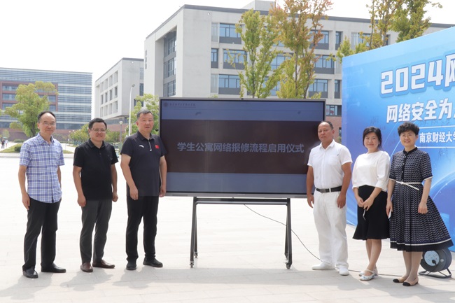 9月10日,万象城在食堂南侧广场举办2024年国家网络安全宣传周活动暨“学生公寓网络报修系统”启用仪式。学院党委书记孙彬,党委副书记、纪委书记高永东,副院长程宏云,副院长王晓庆出席活动,相关职能部门负责人及教师代表参加。