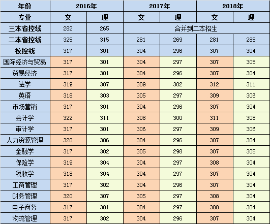 2016-2018年江苏省分专业录取分数线统计表