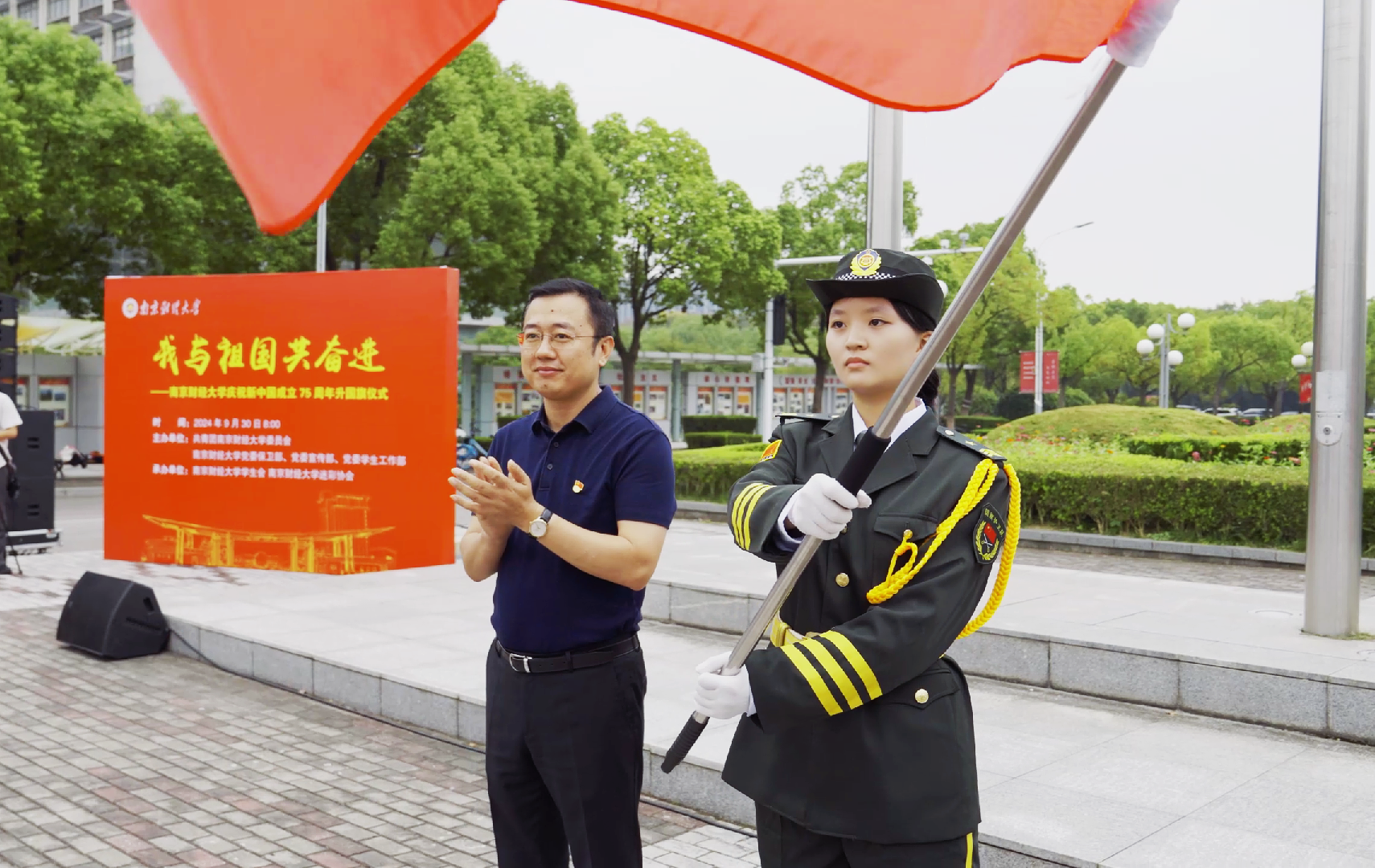 9月30日上午,我校在仙林校区嘉禾大道国旗广场举办“我与祖国共奋进”庆祝新中国成立75周年升国旗仪式。党委常委、副校长赵国栋出席活动,校团委、党委保卫部、党委宣传部、体育部等职能部门负责人,各学院团委负责老师,团员青年代表200余人参加活动。